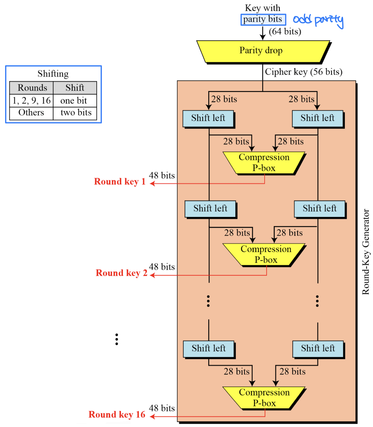 - Compression P-Box: 암호화 시 입력이 버려질 수 있어, 복호화 시 해당 비트를 복원할 방법이 없다.
