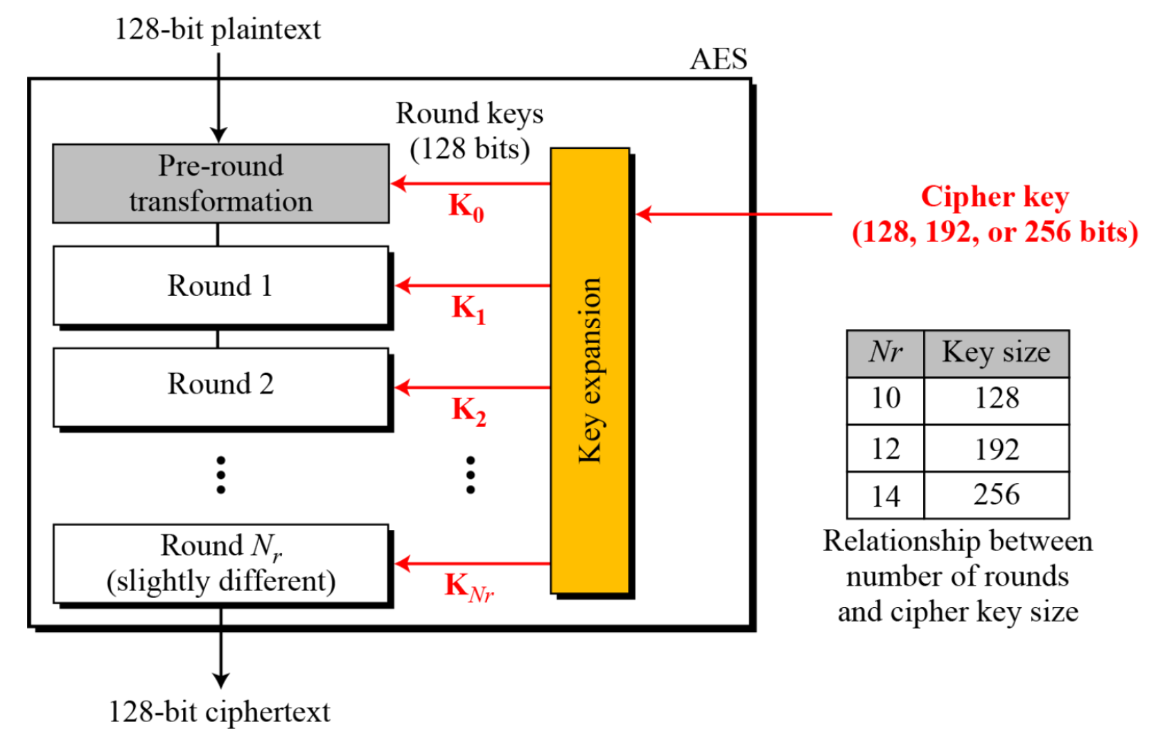 - AES: 128비트 블록