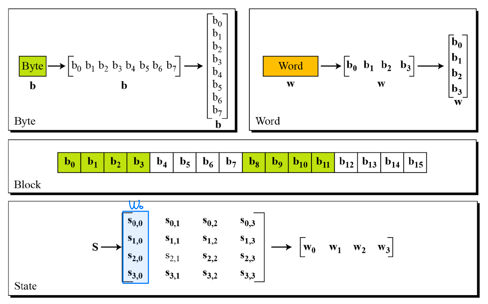 - 암호키가 처음 8개 워드(w₀ ~ w₇) 생성