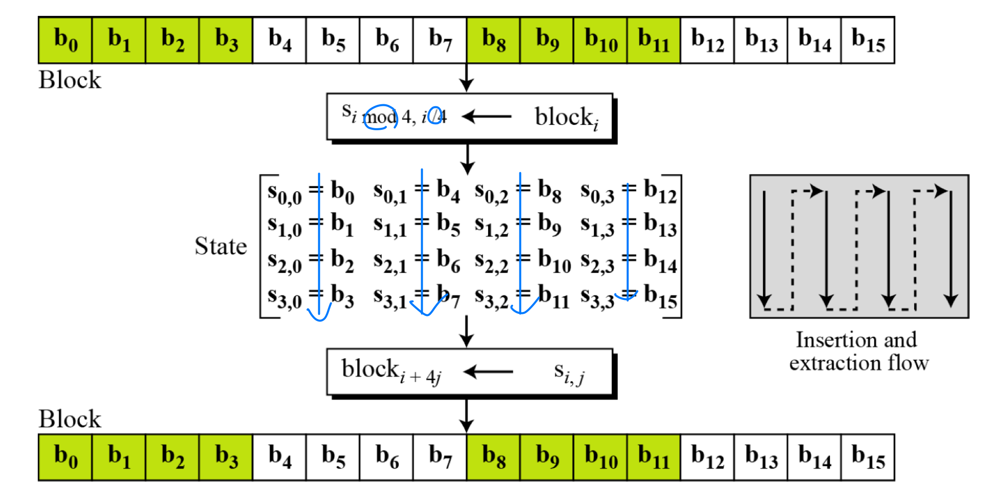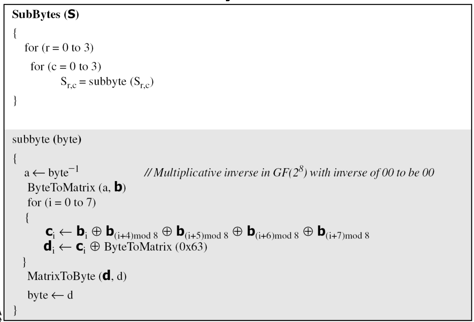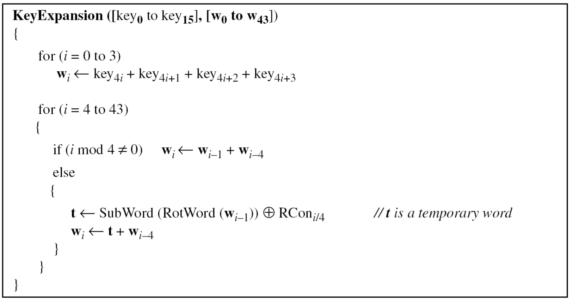 - i mod 4 = 0이지만 i mod 8 ≠ 0이면, wᵢ = SubWord(wᵢ₋₁) + wᵢ₋₈
