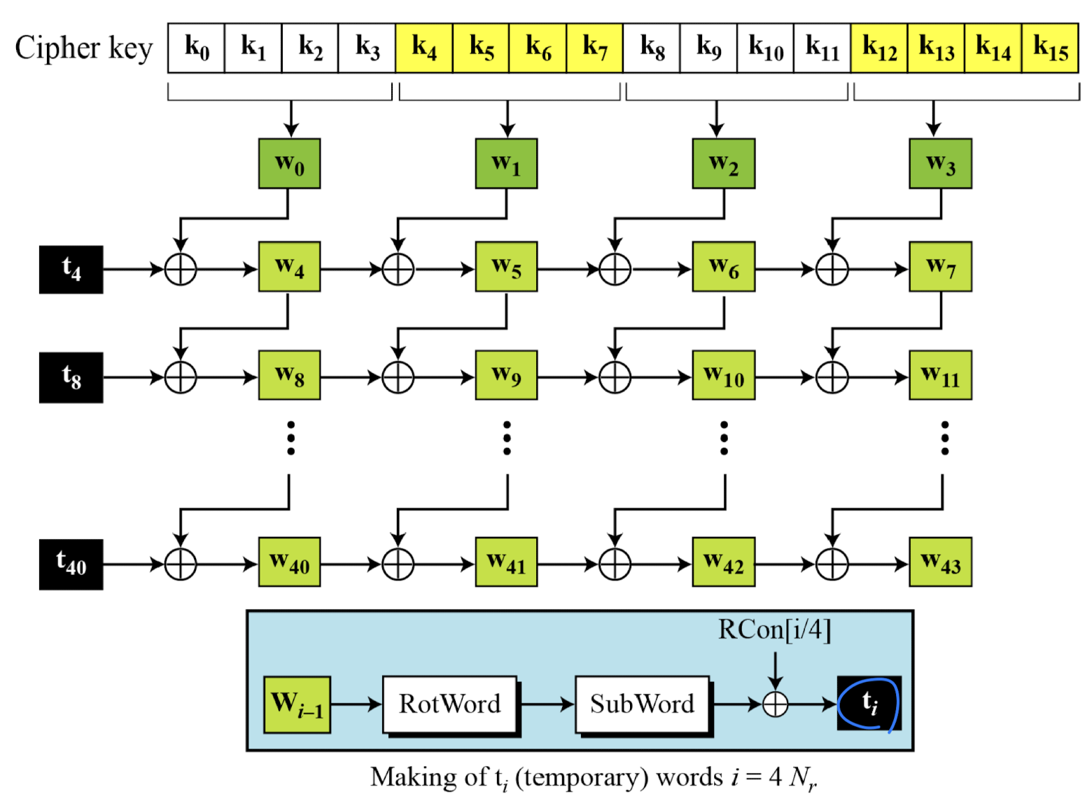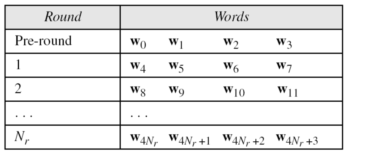 - 암호키가 처음 6개 워드(w₀ ~ w₅) 생성