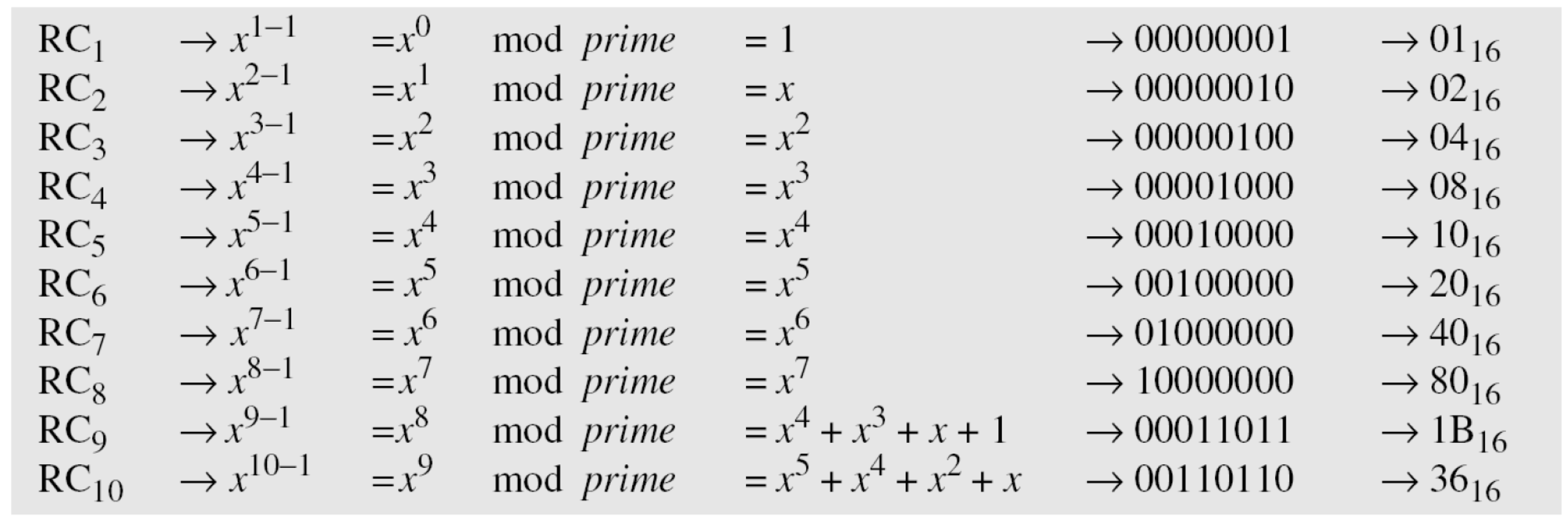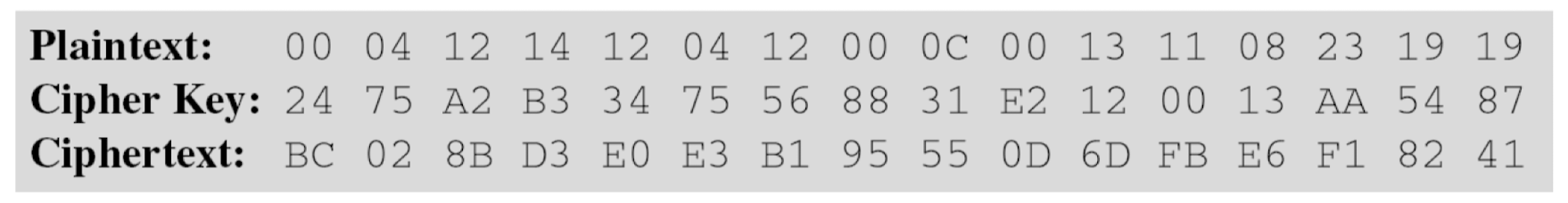 평문이 모두 0일 때의 암호화 결과. 이전 예제의 암호키를 사용하면: