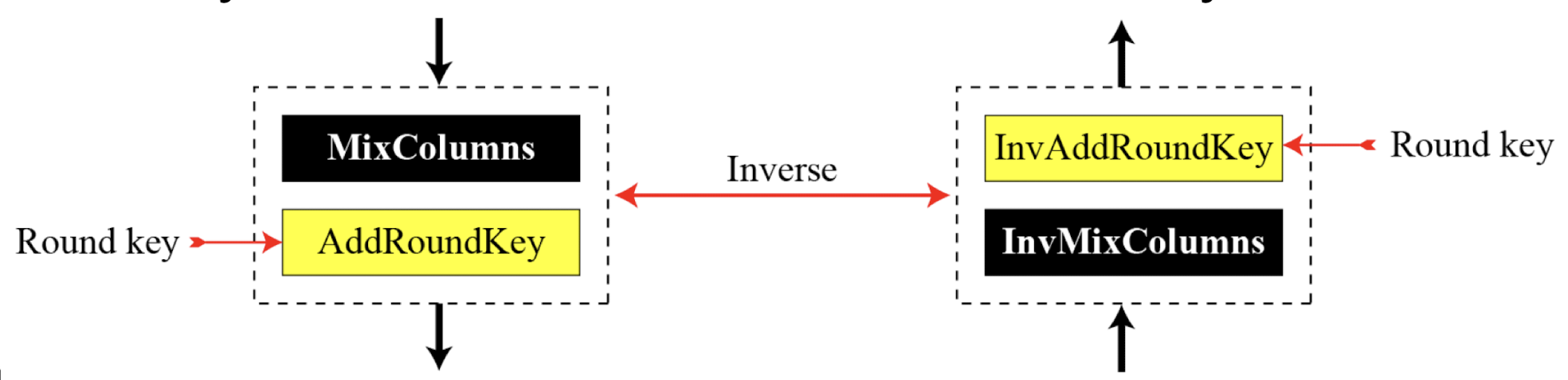 MixColumns와 AddRoundKey 조합의 역연산 가능성: