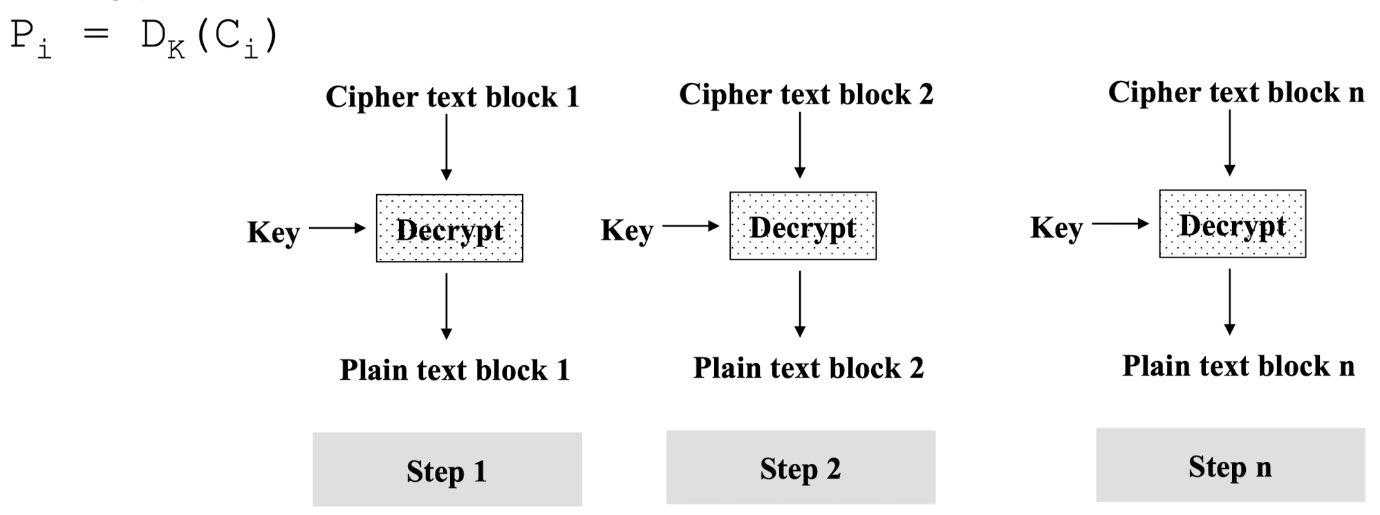 - 약점은 암호화된 메시지 블록이 독립적이기 때문