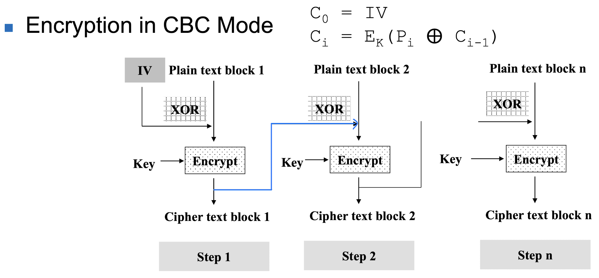 - CBC (Cipher Block Chaining)