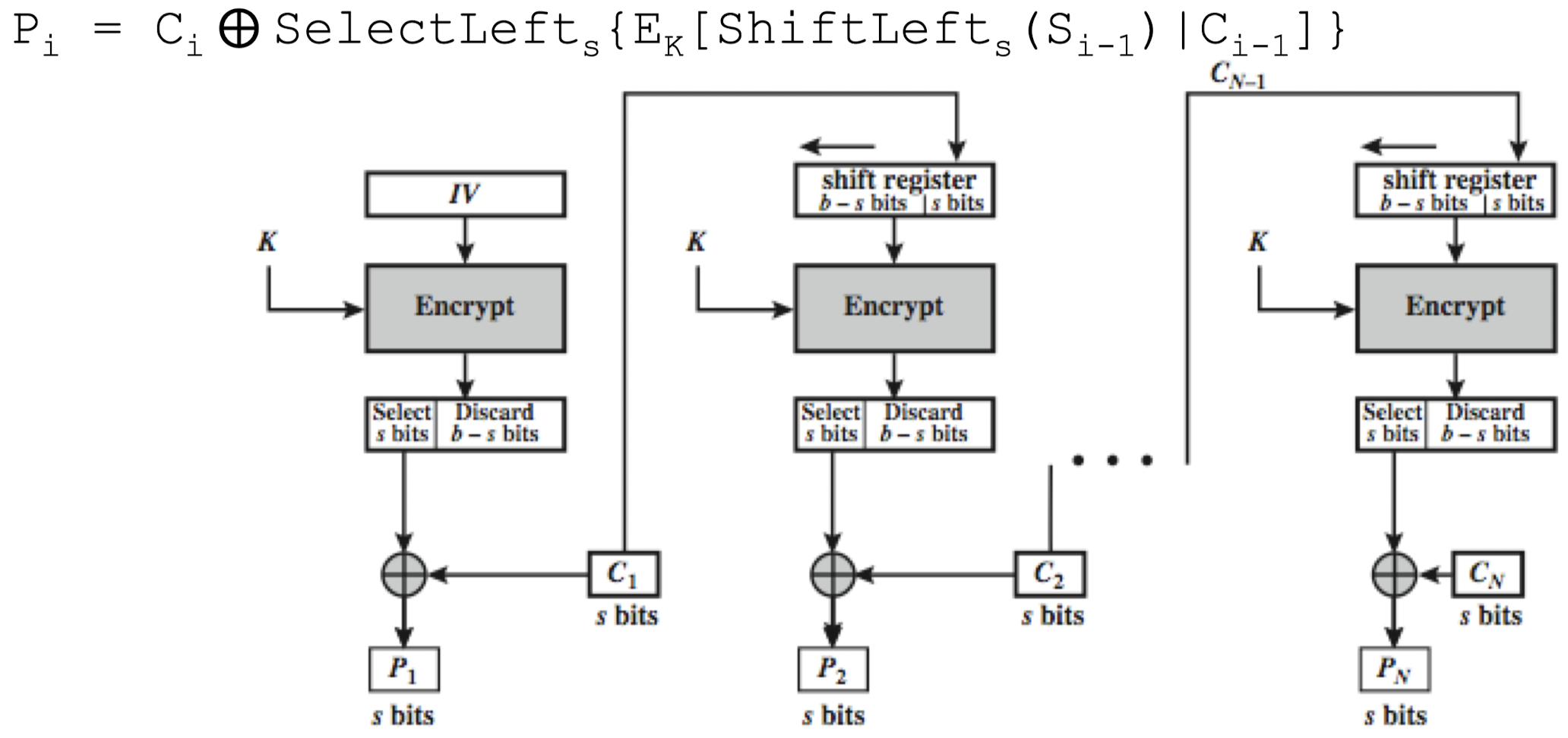 - CFB-1, CFB-8, CFB-64, CFB-128 등으로 표기