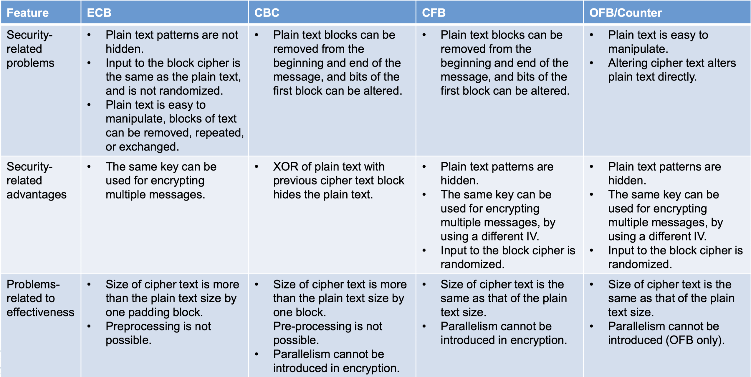 - Eve가 블록 8이 항상 특정 정보를 전달한다는 것을 알면, 이전에 가로챈 메시지의 해당 블록으로 교체할 수 있음